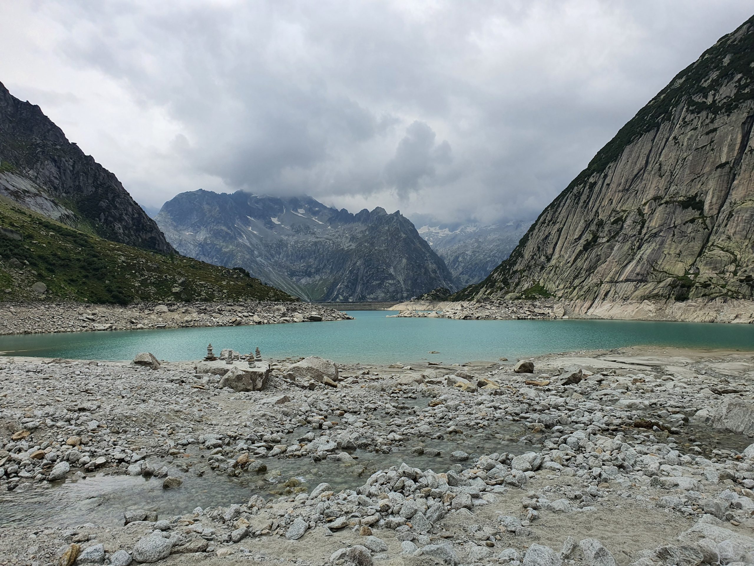 Die Einheimischen hatten wie immer Recht – Der Föhn drückte das Schlechte Wetter noch ein wenig nach hinten wir entschieden uns einstimmig für die Wanderung um den Gelmersee. Die Steinschichten, der See und einfach alles war wirklich wunderschön. Man konnte den See mehr oder weniger flach umrunden, man war immer etwas höher als der Wasserspiegel.