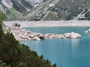 Die Einheimischen hatten wie immer Recht – Der Föhn drückte das Schlechte Wetter noch ein wenig nach hinten wir entschieden uns einstimmig für die Wanderung um den Gelmersee. Die Steinschichten, der See und einfach alles war wirklich wunderschön. Man konnte den See mehr oder weniger flach umrunden, man war immer etwas höher als der Wasserspiegel.